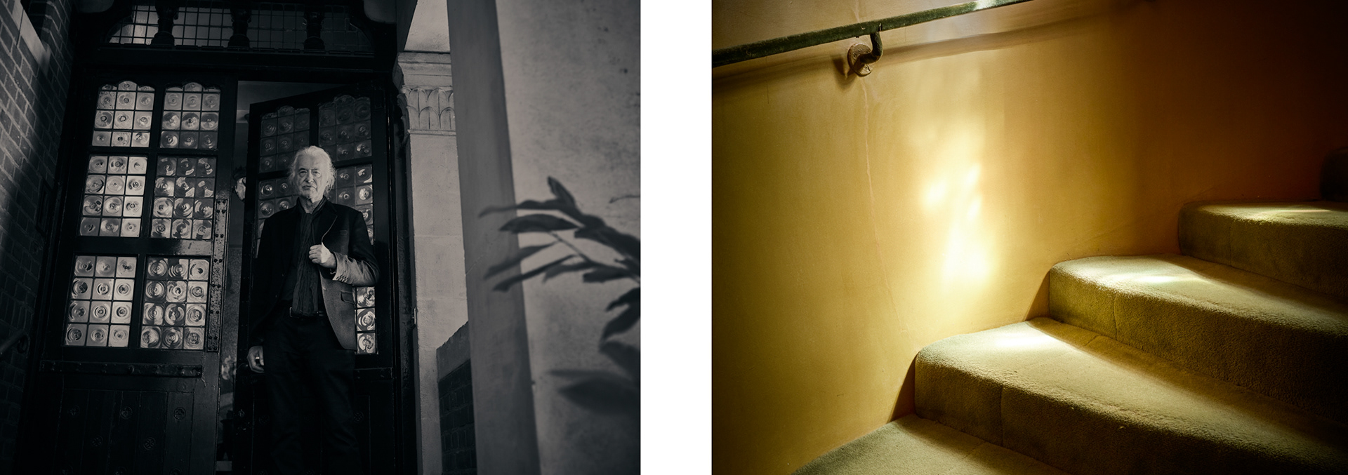 Jimmy Page Outside The Tower House & Staircase Detail