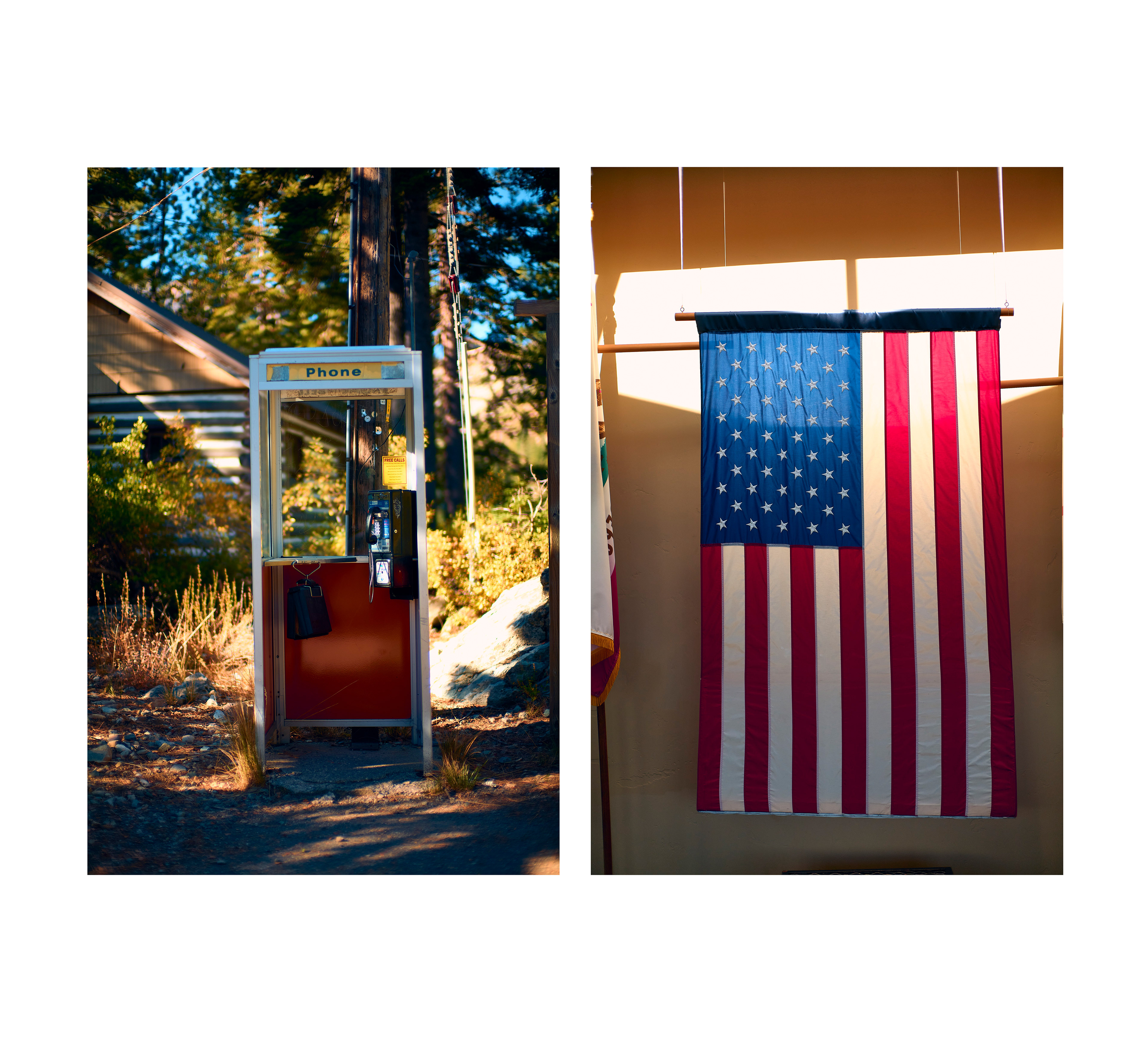 PHONE BOX & FLAG - SARDINE LAKE, NORTHERN CALIFORNIA